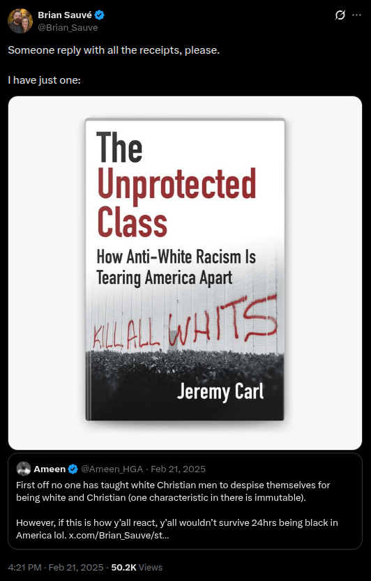 Most notably, Spencer and Curcio have very loudly positioned themselves against the so-called “Reformed” Christian Nationalists—one could say they’ve made it a part of their brand—even though Carl finds much, if not the majority, of his online support among the movement. After all, no organization more prominently supports “Reformed” Christian Nationalism than American Reformer; its board and ranks are so full of Carl’s fellow Claremont fellows that it can be considered an unofficial lobbying arm of the organization.